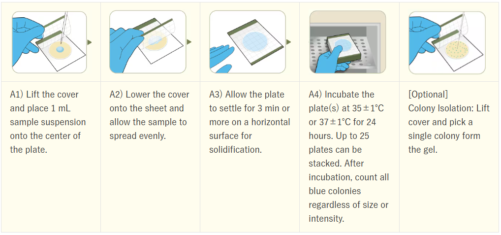 - Identifying is simpler in comparison to agar count media due to the colour change, making it unnecessary to confirm the presence or absence of air bubbles or the size of colonies.
